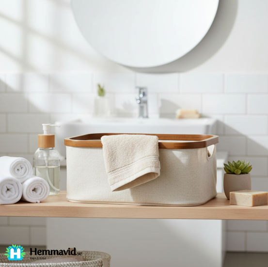 Upptäck vår nya förvaringslinje i bambu och linne. Designad med rena linjer och mjuka material, ger sortimentet lugn, ordning och skönhet till varje rum i ditt hem. En hållbar bamburam i varma bruna toner i kombination med linnefärgat tyg och dess naturliga trådvariationer.