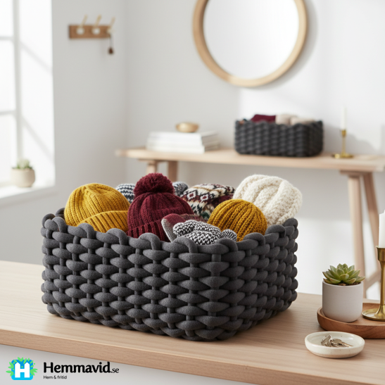 Kollektionen består av tre runda korgar, inklusive en XL-modell perfekt för filtar vid soffa eller leksaker i barnrummet, tillsammans med två rektangulära korgar designade för att hålla vardagliga föremål snyggt organiserade.