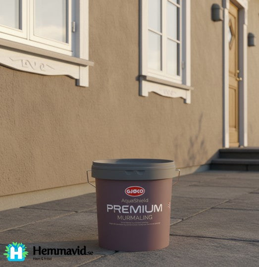 Gjøco AquaShield Premium Murmaling innehåller filmbeskyddande svampförebyggande medel och har god väderbeständighet. Färgen är särskilt lämplig för mur, betong och puts, både obehandlat och tidigare målat. Är inte lämplig för användning på supereternit.