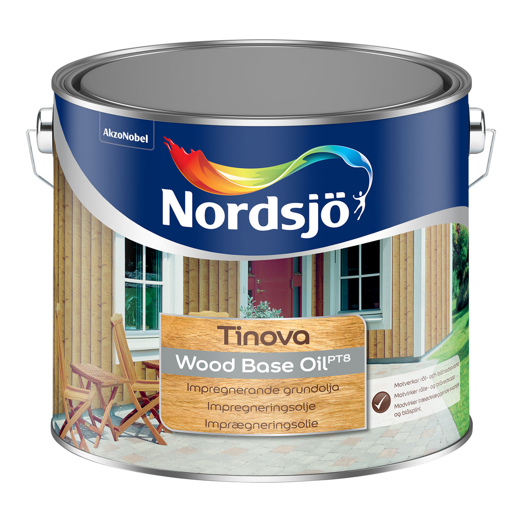 Nordsjö Tinova Wood Base Oil är ett impregnerade träskyddsmedel (PT8) som används på nytt eller barskrapat virke.