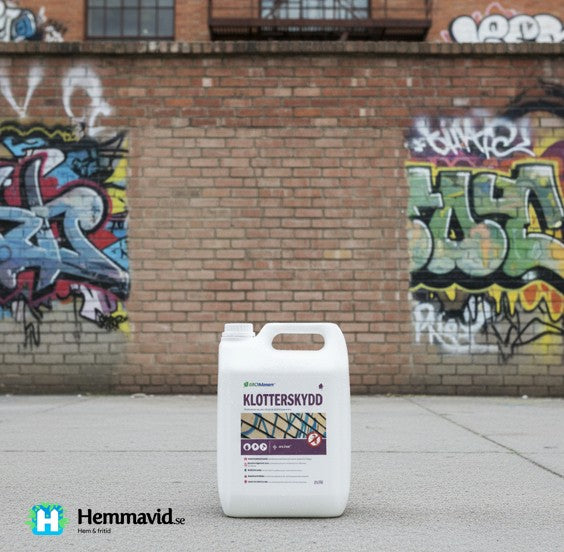 Användning: Pensla, rolla eller spruta klotterskyddet på ytan. Produkten ska strykas ut väl så att ytan blir jämn och slät. Vid sugande underlag låt torka 1 timme och upprepa behandlingen. Sprayfärger, tusch och andra färger kan enkelt tas bort från ytor belagda med Klotterskydd. Efter borttagning av klotter skall ny behandling göras. Kan användas på målade och omålade ytor på tegel, puts, betong, sten, trä, marmor, klinker, kakel, metall m. m.