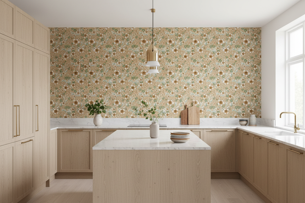 This wallpaper would be an excellent decoration for a children's room, a playground or a creative space where you want to add a pop of color and liveliness. The floral pattern and the colorful tones would also make it an excellent decoration for a kitchen or dining room where you want to create a fresh and happy atmosphere.