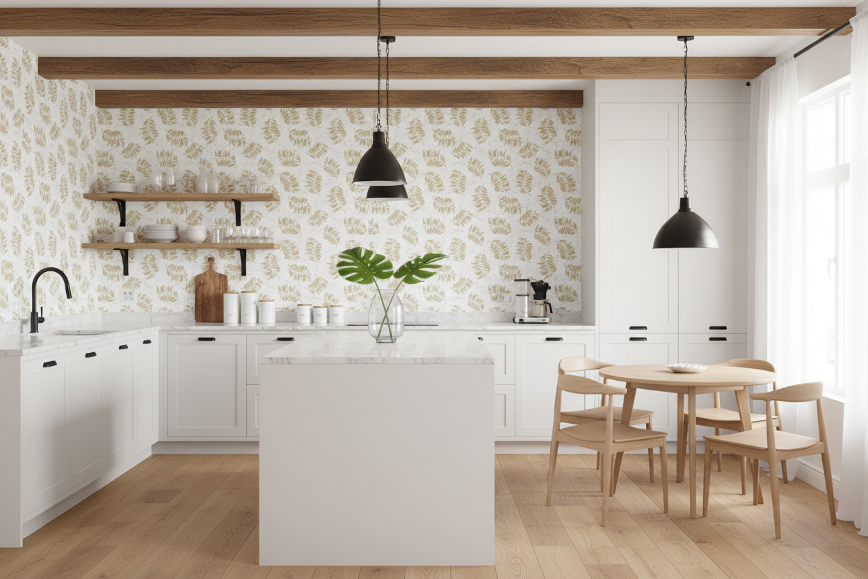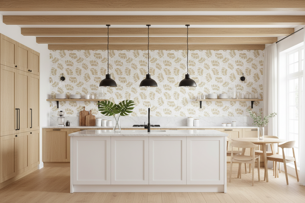 Textured Watercolor Palm Toss är också ett utmärkt val om du vill skapa en tropisk känsla i ditt hem, oavsett om du bor i ett soligt klimat eller inte. Tapeten ger en subtil touch av naturen och gör att du kan känna dig som om du är mitt i en tropisk djungel.