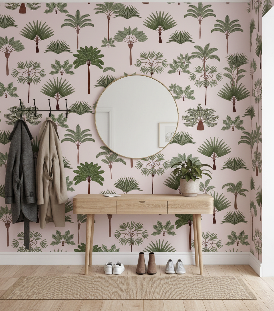 Förvandla ditt rum till en tropisk oas med vår Palm Trees-tapet. De gröna palmbladen skapar en harmonisk och avslappnande atmosfär som för tankarna till exotiska destinationer och soliga dagar.
