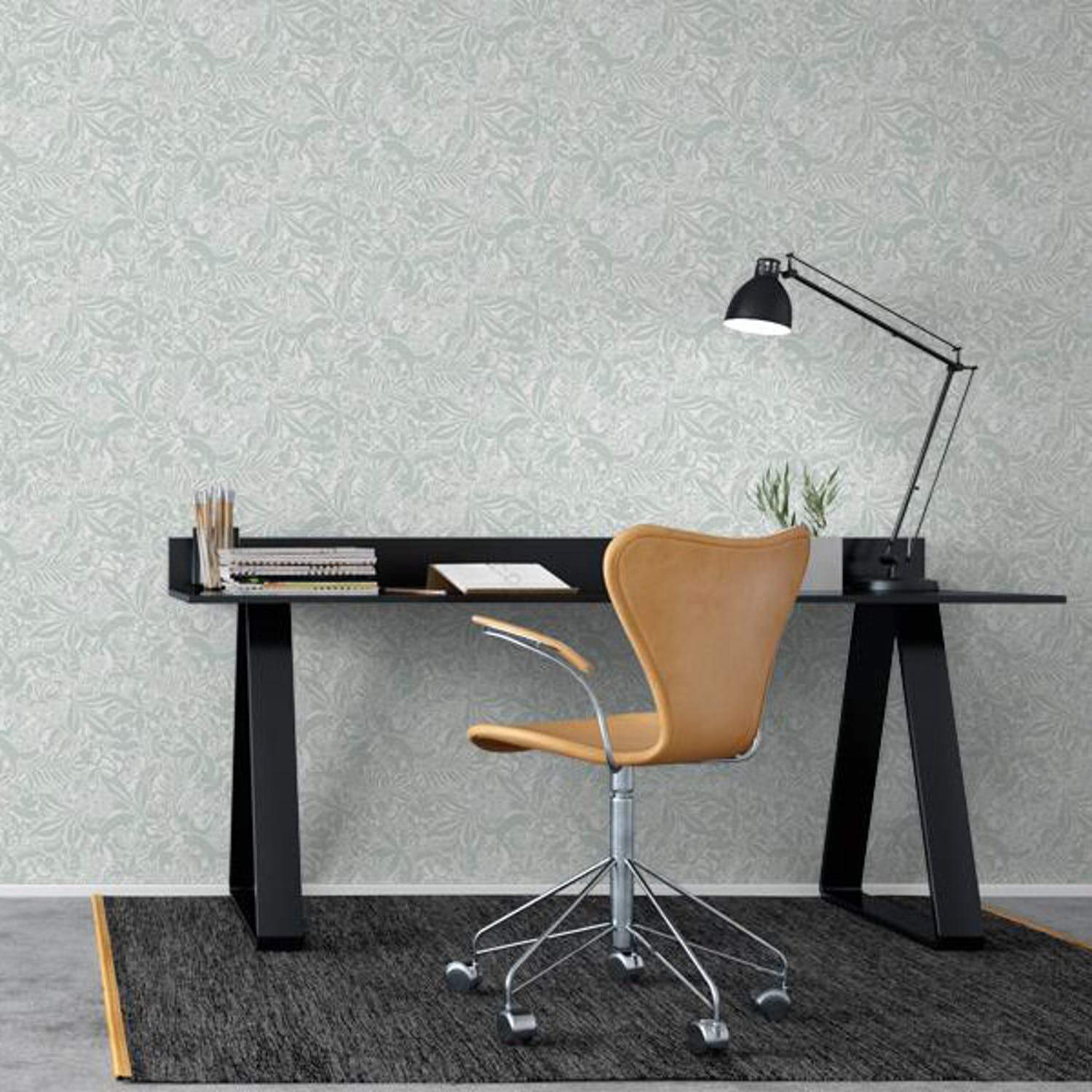 Lekfull tapet i diskreta färger och ett fantasifullt mönster. Hur många rävar kan du räkna till? När växtrikets blad flätas samman ser du hur det mesta och de flesta gömmer sig både här och var. Om du tittar tillräckligt noga förstås. Tapet till sovrum, barnrum och vardagsrum.