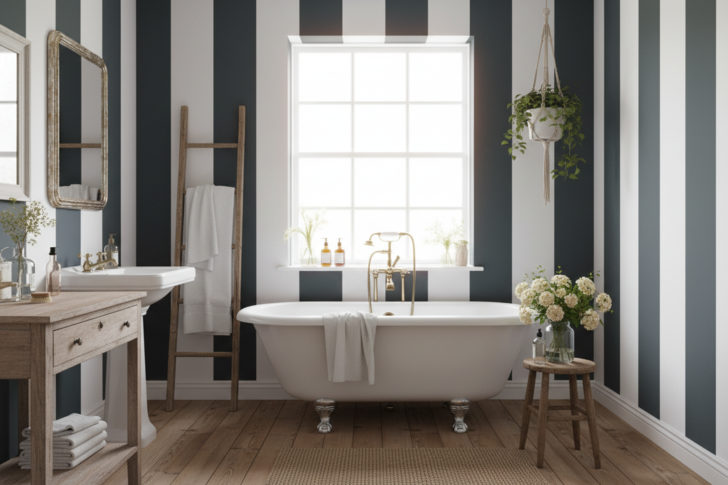 Oavsett vilken stil du väljer är en bredrandig tapet ett utmärkt val för att ge extra piff till ditt rum. Så våga välja en färg som uttrycker din personlighet och våga sätta den vågrätt om du vill ha en modern twist på en klassiker.